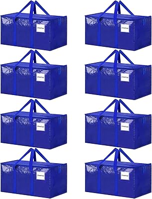 8 Pack Extra Large Heavy Duty Moving Bags, Blue Storage Bins with Lids, Reinforced Handles & Heavy-Duty Zippers Moving Boxes Storage Bags Totes for Clothes Packing, Dorms, College Supplies, Blue