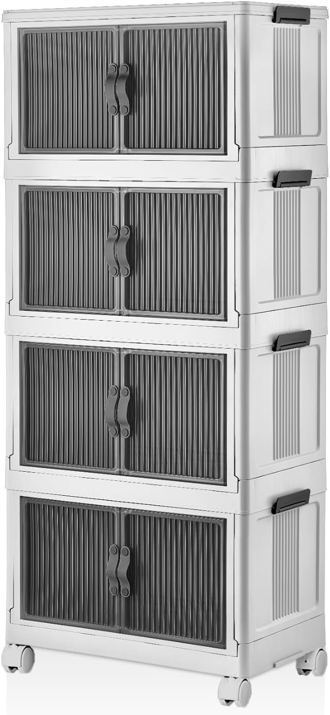 Deconox 4 Layers Portable Organizer Multi-Purpose Foldable Cabinet with Wheels, Organizer Shelf with Lid Tidying Unit for Kitchen, Bathroom, Childrens Room, Garage and Storage, Stop Wheeled WHITE